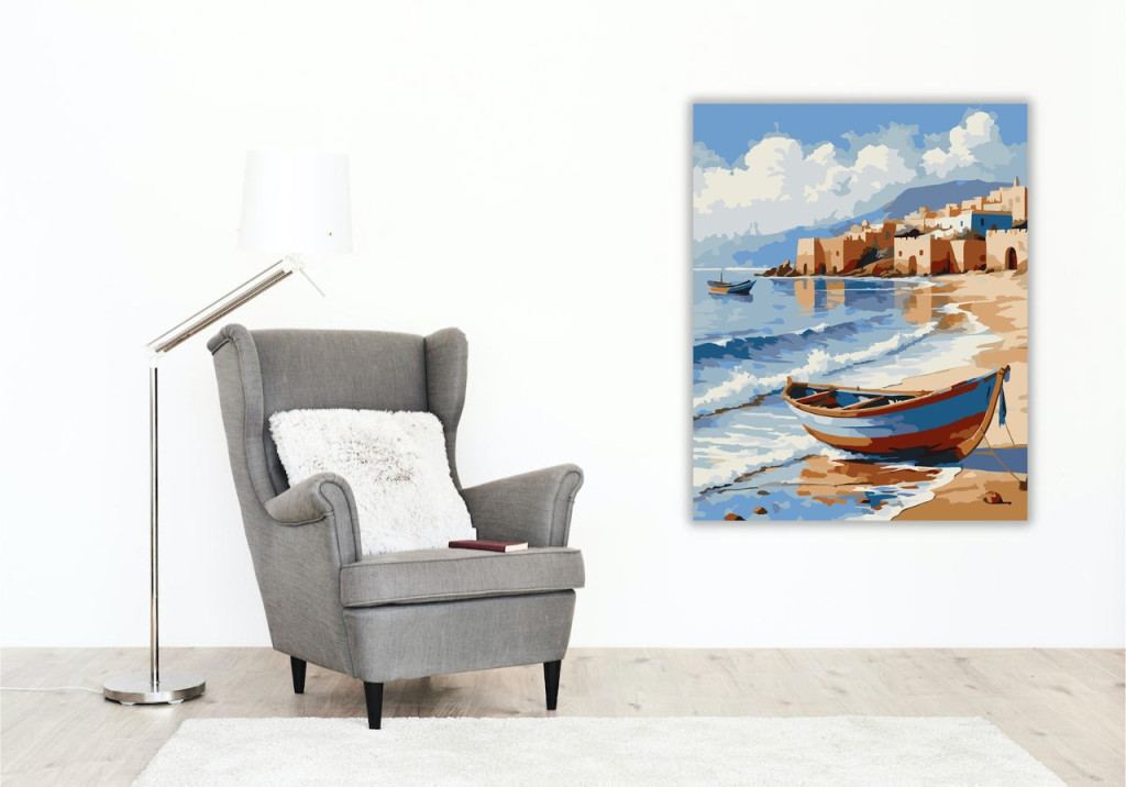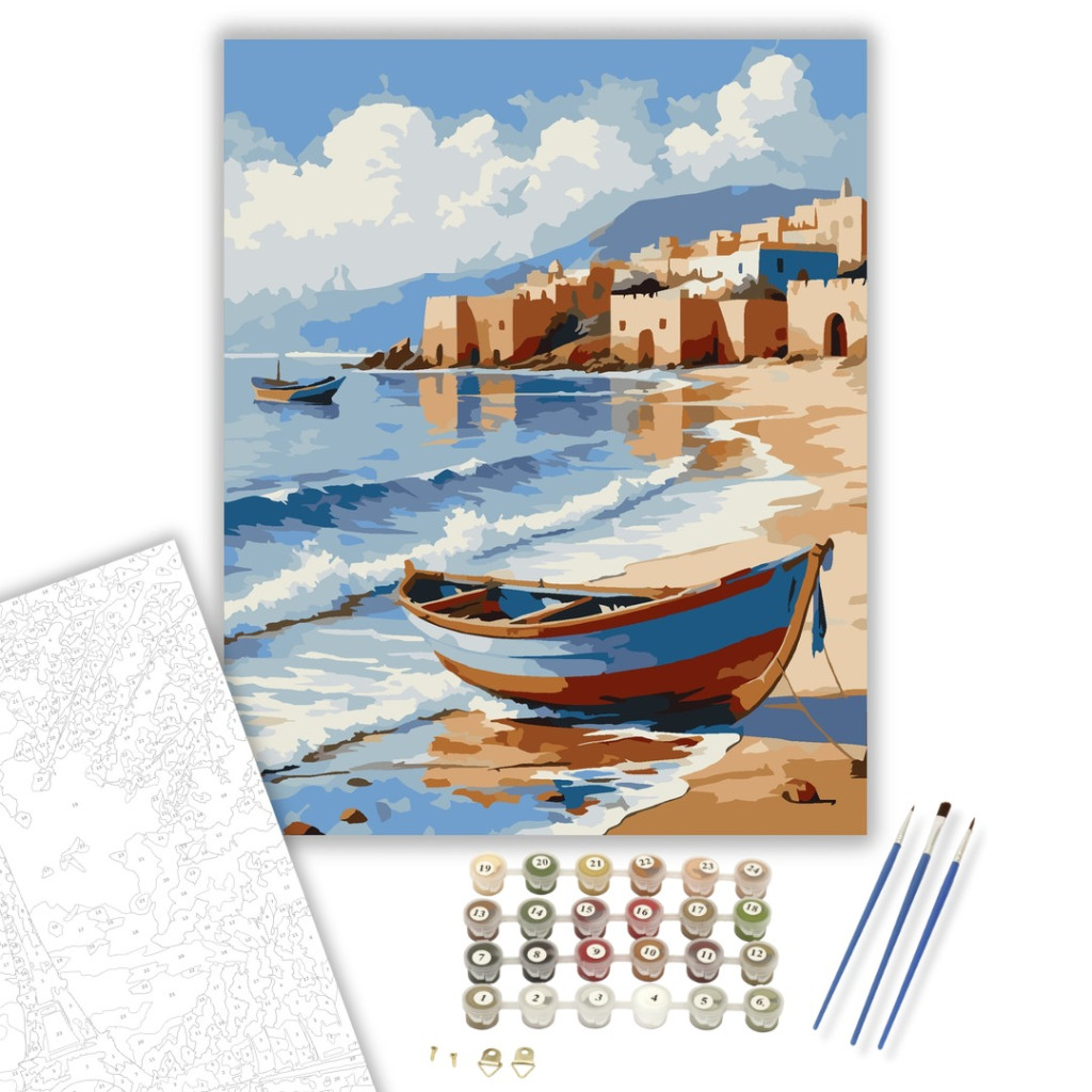 Atlanti-óceán Partja Halászhajókkal - számfestő készlet – 40×50 cm (Keretre feszítve)