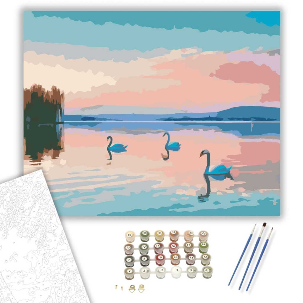 Balatoni Napkelte Hattyúkkal - számfestő készlet – 80×100 cm (Keretre feszítve)