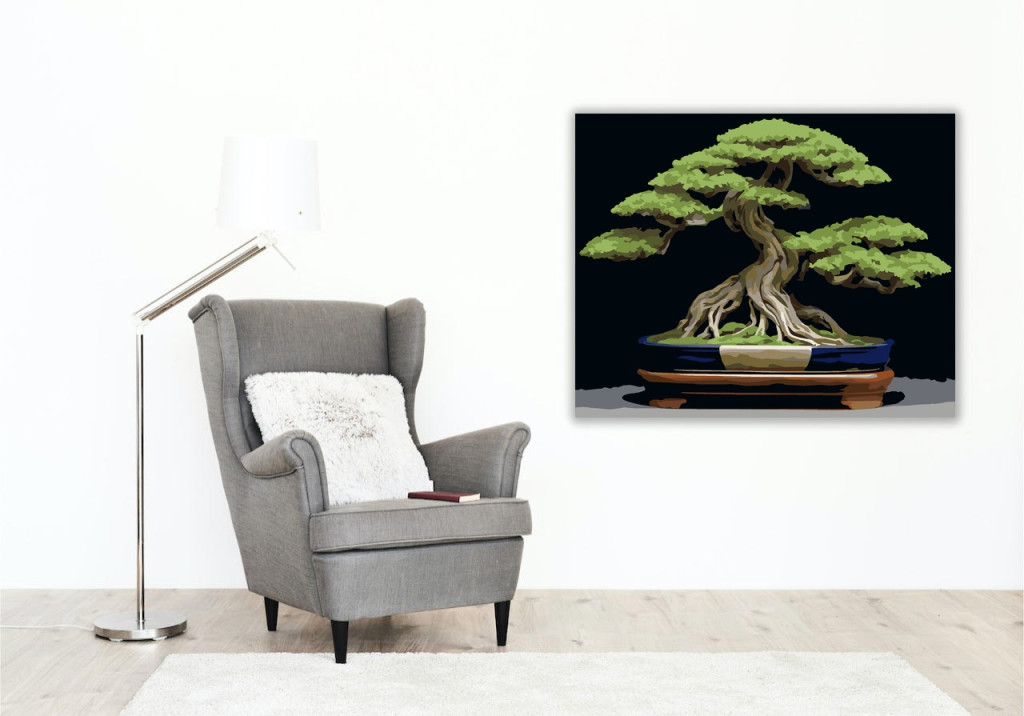 Bonsai Fa Kék Edényben - számfestő készlet - Számfestő.hu - 40×50cm - keretre feszítve