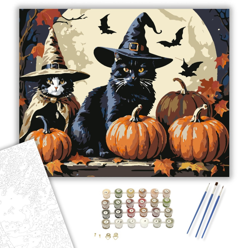 Számfestő készlet – Boszorkányos Cicák – 60×70 cm (Keret nélkül)