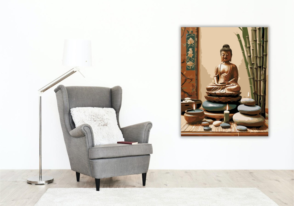 Buddha Szobor Gyertyákkal és Bambusszal - számfestő készlet – 80×100 cm (Keret nélkül)