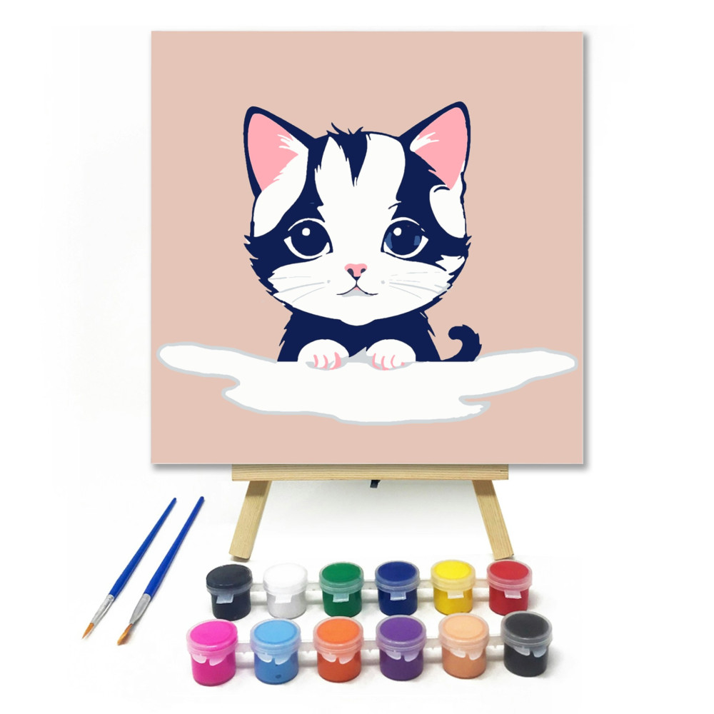Cicus a felhőn - gyerek számfestő készlet – 20×20 cm (Keret nélkül)