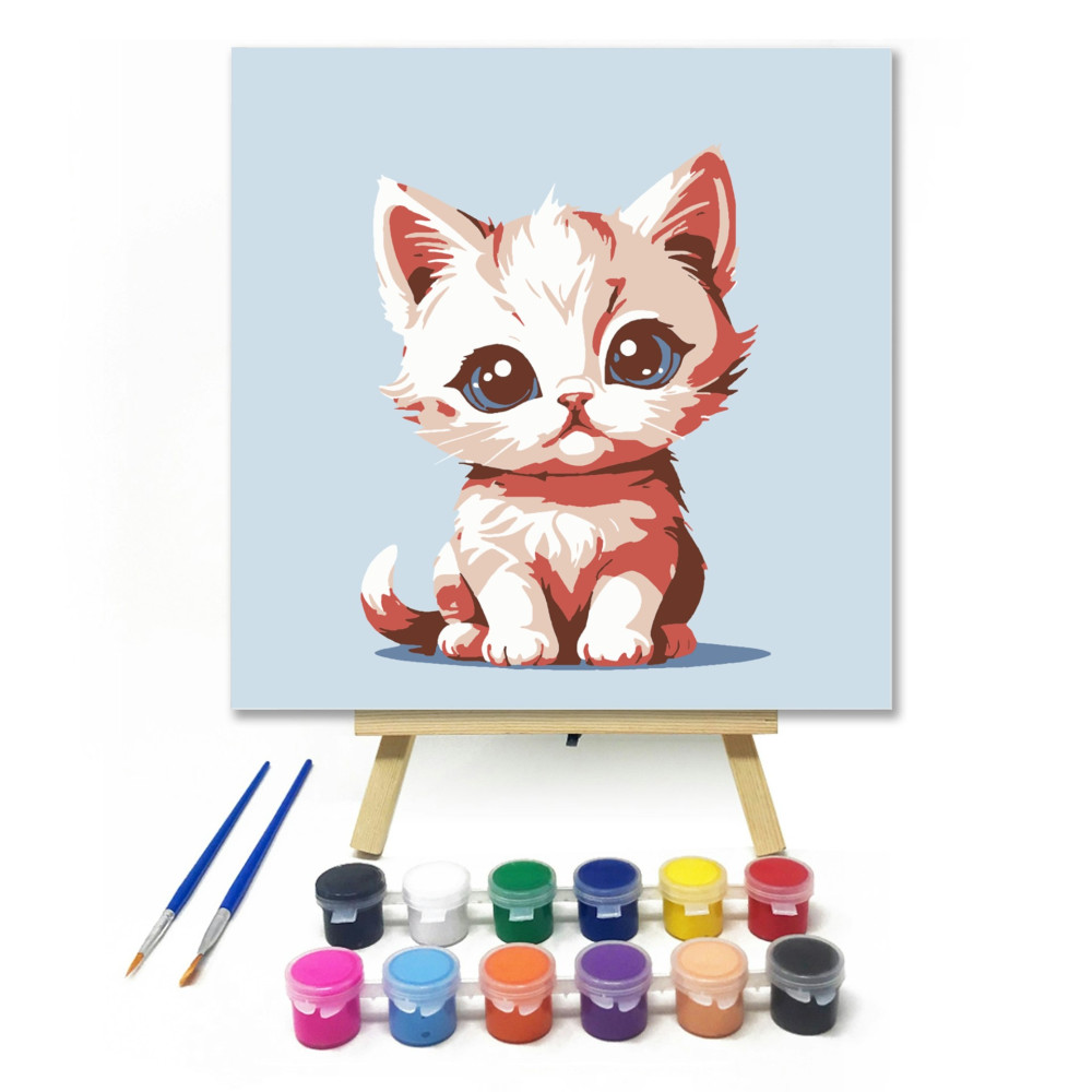 Ez a kép egy aranyos, csíkos kis cicát ábrázol, aki kíváncsian néz a világra. A barátságos színek segítenek, hogy a festés igazán vidám élménnyé váljon. Remek választás a gyerekek kreatív kalandjaihoz!