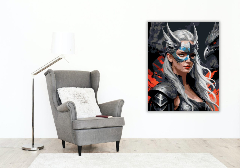 Számfestő készlet – Ezüst Maszkos Sárkányjós – 60×70 cm (Keret nélkül)