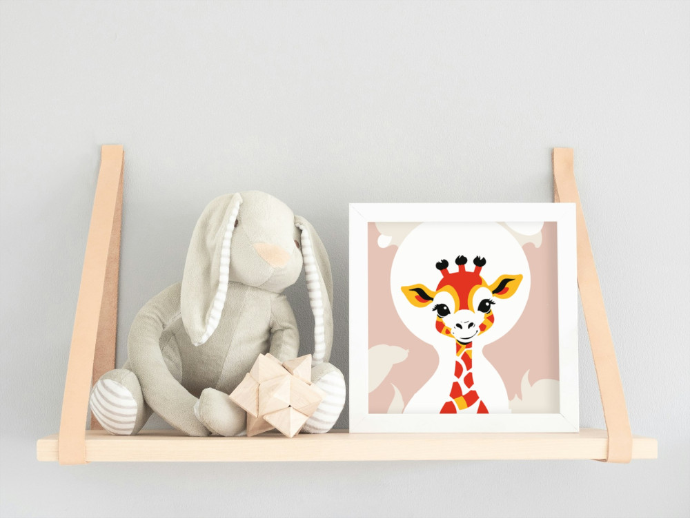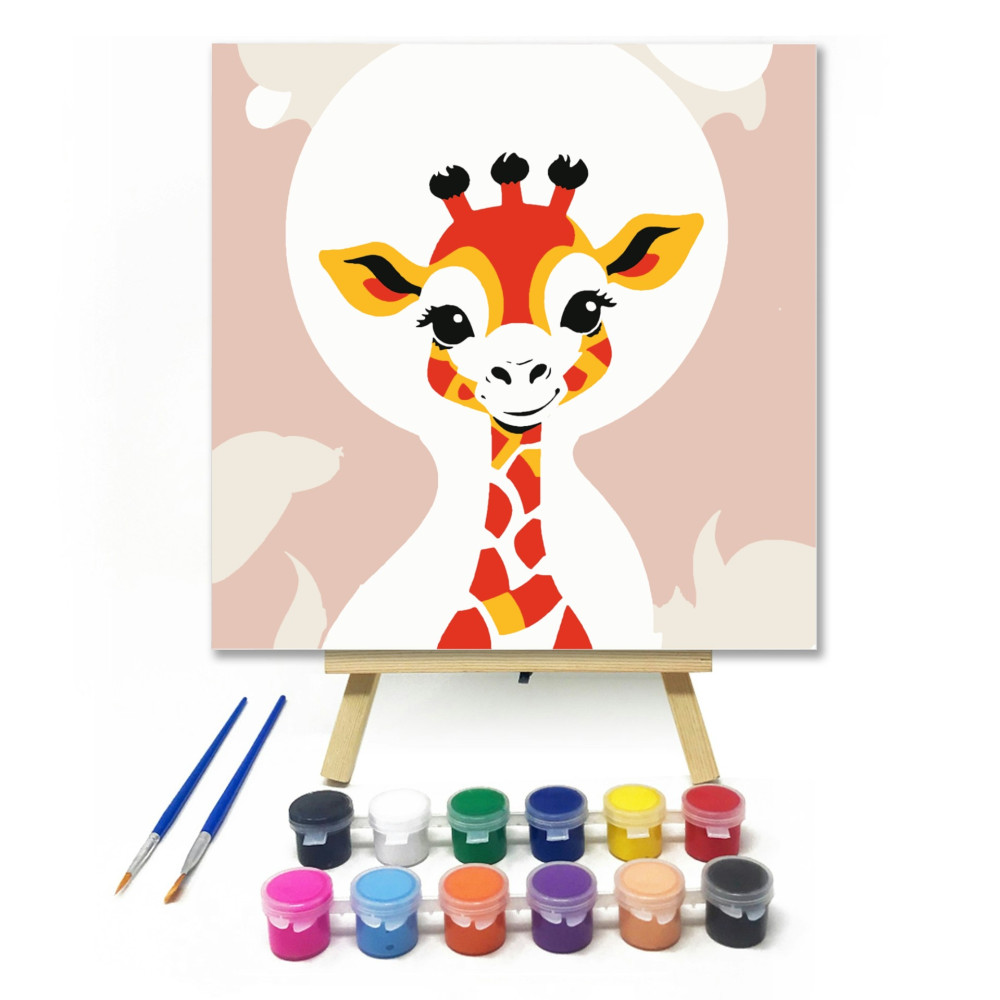 Fiatal zsiráf - gyerek számfestő készlet – 40×40 cm (Keretre feszítve)