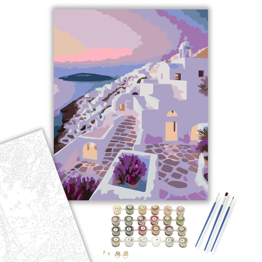 Folegandros Hajnal a Fehér Tetők Felett - számfestő készlet – 50×60 cm (Keret nélkül)