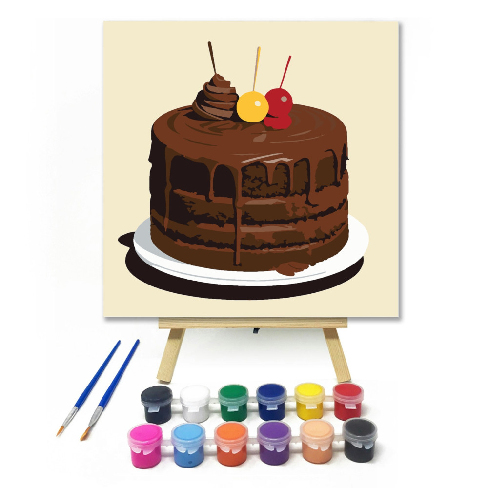 Folyós csokoládé torta - gyerek számfestő készlet – 50×50 cm (Keretre feszítve)