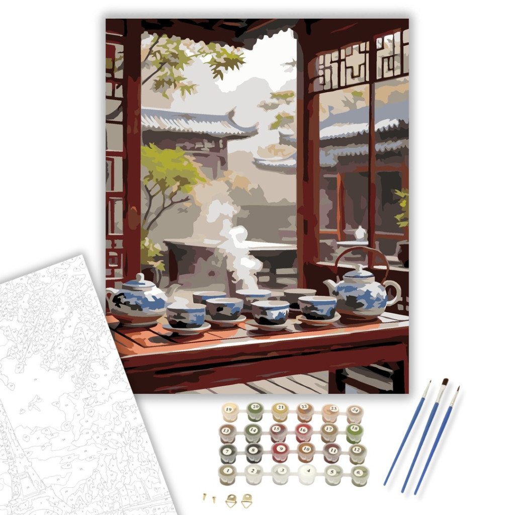 Hagyományos Tea Szertartás Harmóniája - számfestő készlet – 40×50 cm (Keretre feszítve)