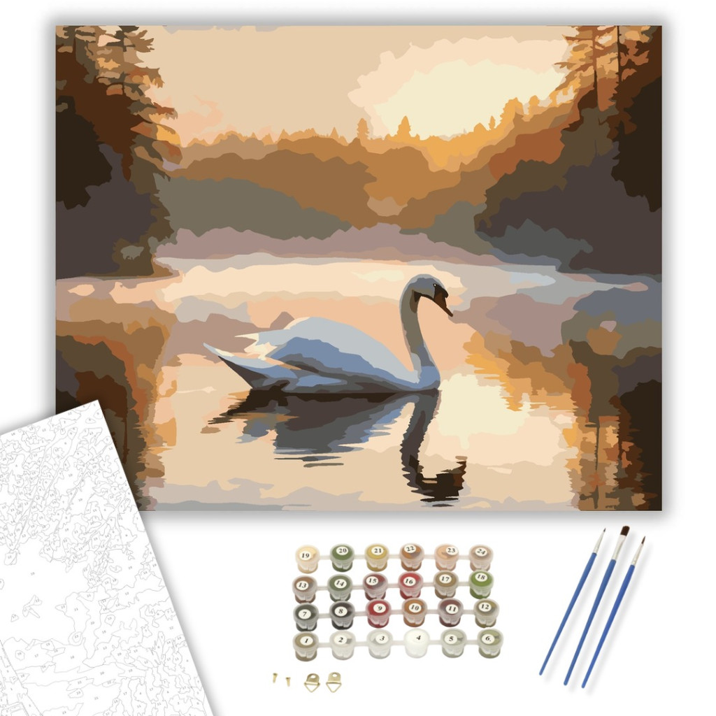 Hattyú a Hajnalban - számfestő készlet – 40×50 cm (Keretre feszítve)