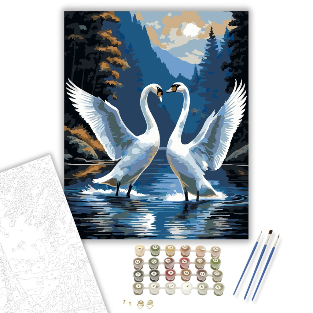 Számfestő készlet – Hattyúk Tánca a Hegyi Tavon – 60×70 cm (Keret nélkül)