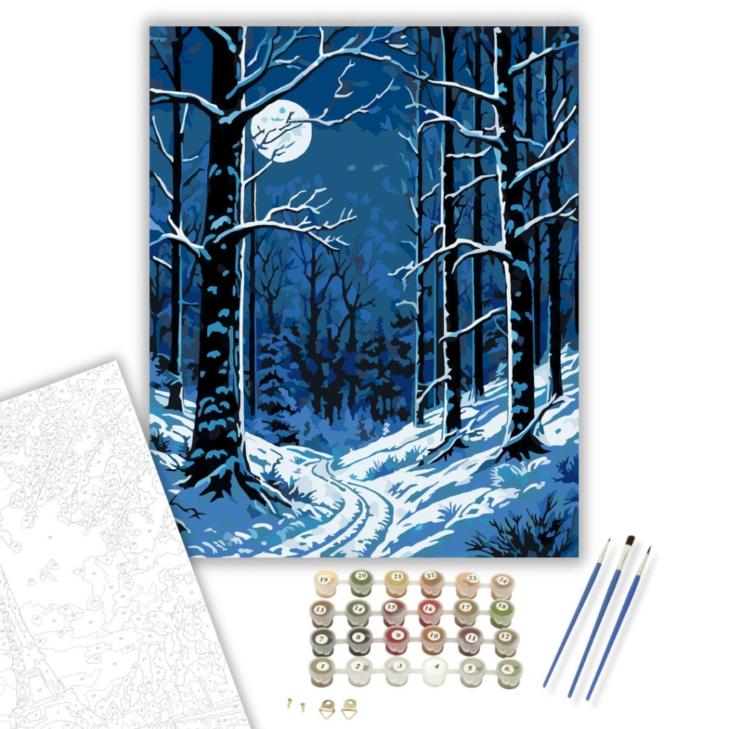 Számfestő készlet – Holdfényes Havas Erdő – 50×60 cm (Keretre feszítve)