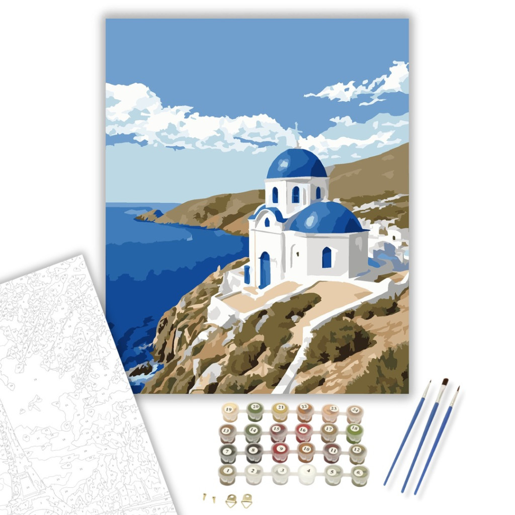 Ios Fehér Temploma és Kék Kupolája - számfestő készlet – 50×60 cm (Keretre feszítve)