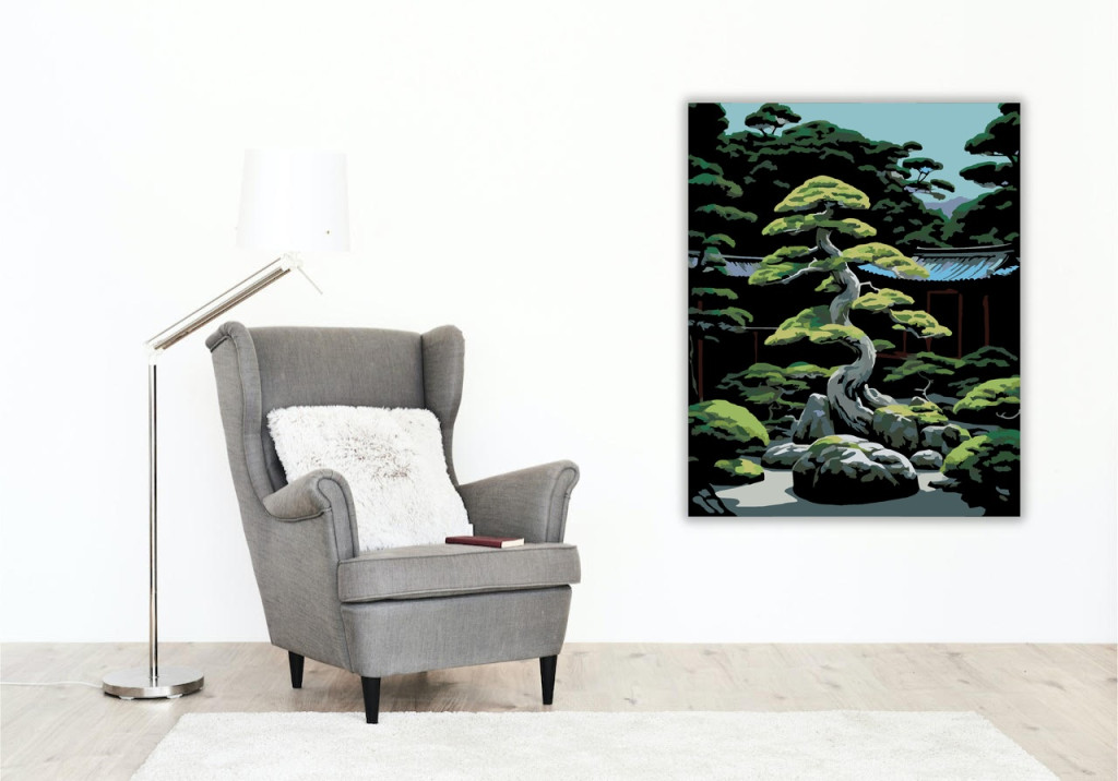 Számfestő készlet – Japán Kert Bonsai Fákkal – 40×50 cm (Keretre feszítve)