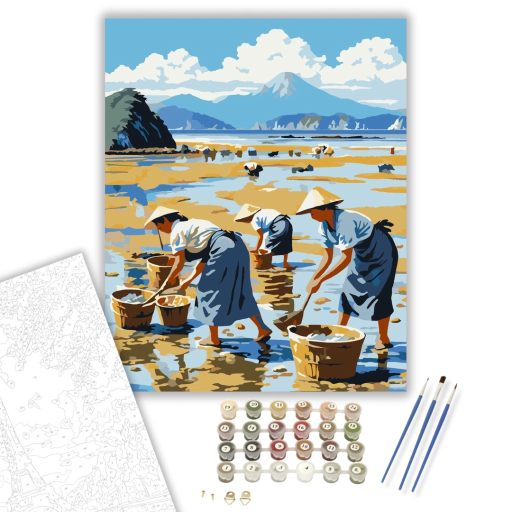 Japán Tengerpart Kagylógyűjtőkkel - számfestő készlet – 80×100 cm (Keret nélkül)