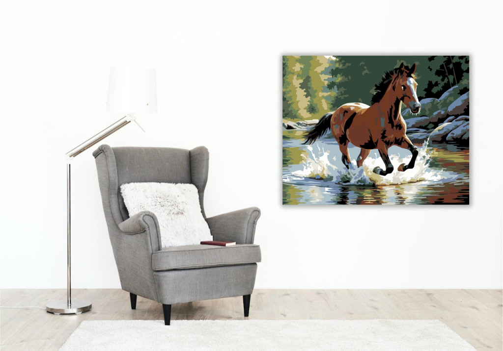 Játékos Csikó a Patakban - számfestő készlet – 50×60 cm (Keret nélkül)