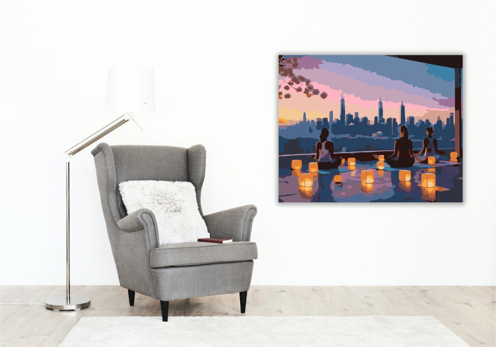 Jóga a Városi Kilátással - számfestő készlet - Számfestő.hu - 40×50cm - keret nélkül