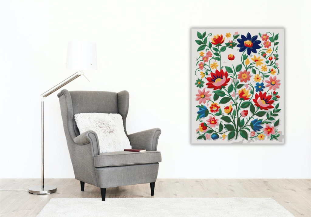 Számfestő készlet – Kalocsai Hímzés Virágmintával – 60×70 cm (Keret nélkül)