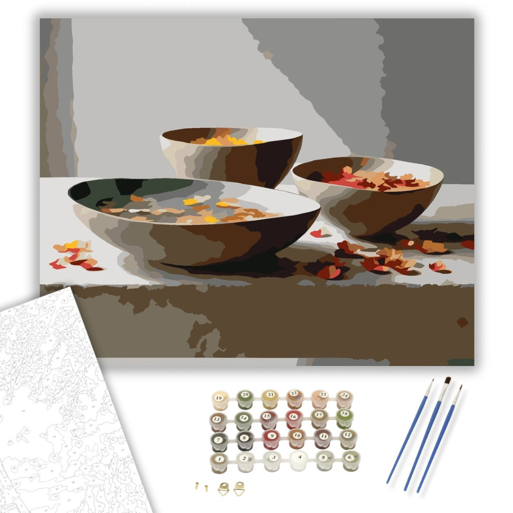 Számfestő készlet – Kerámia Tálak Lebegő Virágszirmokkal – 40×50 cm (Keret nélkül)