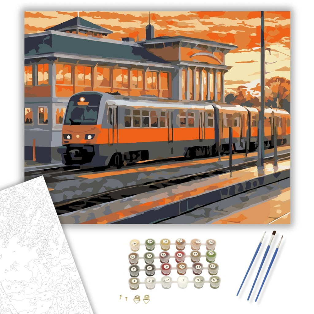 A festmény egy kétszintes ingázó vonatot ábrázol, amint megérkezik egy külvárosi állomásra alkonyatkor. Az ablakok visszatükrözik az ég narancssárga színeit, miközben az utasok a peronon várakoznak. A kép meleg, nyugodt hangulatot áraszt, az esti utazás békéjét sugallva. Varázsolj egyedi hangulatot otthonodba ezzel a gyönyörű számfestő készlettel, amely tökéletes ajándék is lehet szeretteid számára. A csomag mindent tartalmaz, amire szükséged van ahhoz, hogy saját kezűleg alkoss egy lenyűgöző festményt.