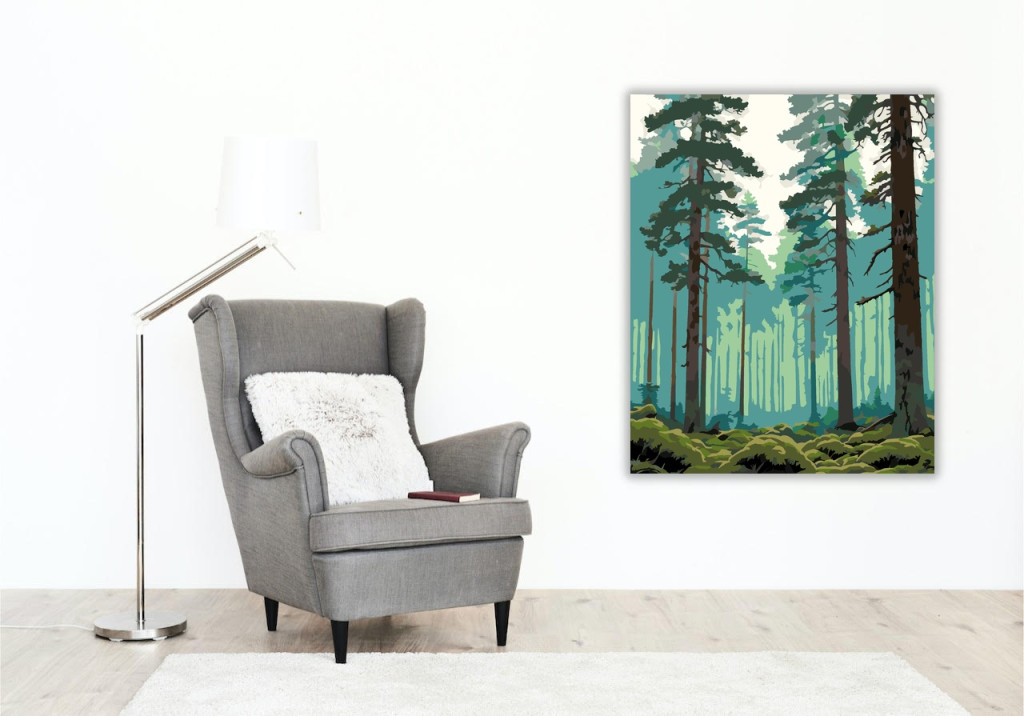 Misztikus Ködös Fenyőerdő - számfestő készlet - Számfestő.hu - 80×100cm - keretre feszítve