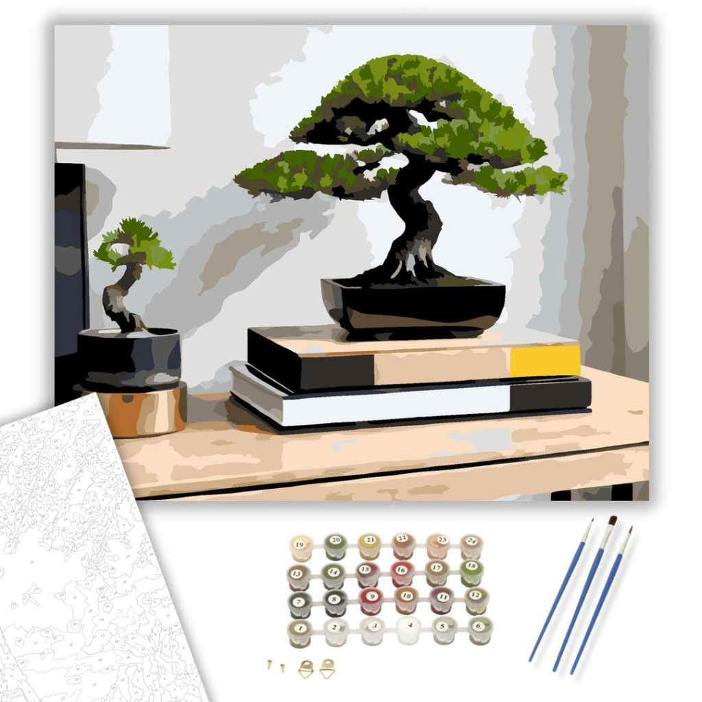 Modern Bonsai a Fa Asztalon - számfestő készlet – 40×50 cm (Keret nélkül)