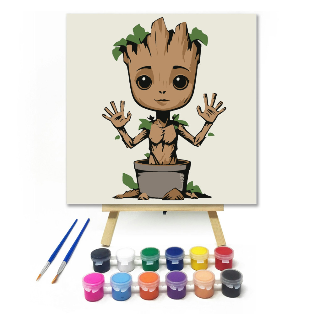 Mosolygó kis fa - gyerek számfestő készlet – 20×20 cm (Keretre feszítve)