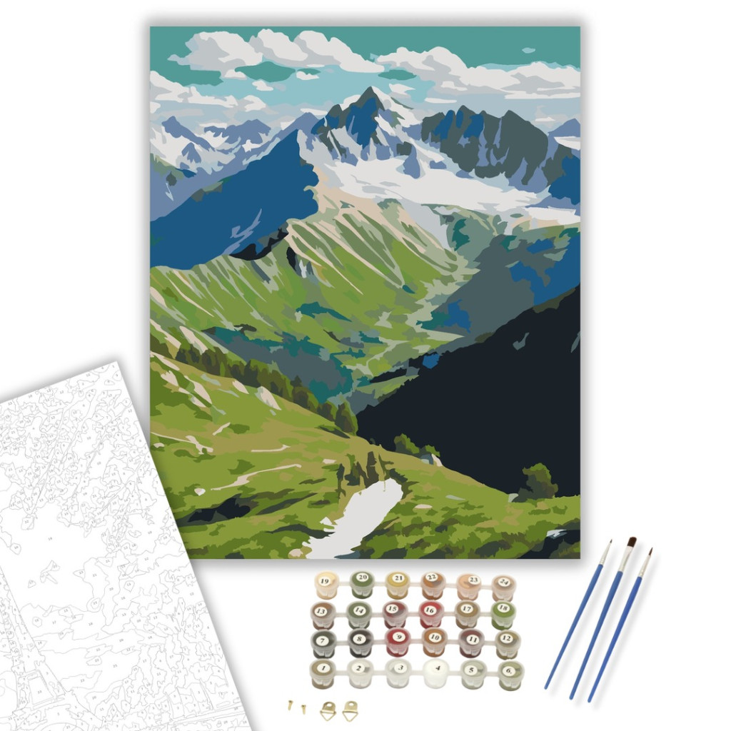 A festmény a Pireneusok hófödte csúcsait és zöld alpesi rétjeit ábrázolja, ahol turisták egy kanyargós ösvényen sétálnak. A kép élénk zöld és fehér színei friss, természetközeli hangulatot teremtenek. Az ábrázolás a szabadság és a kaland érzését közvetíti. Legyen a lakásod dísze vagy egy kedves meglepetés valaki számára – ez a számfestő készlet tökéletes választás mindkettőre. A készletben mindent megtalálsz, amivel lépésről lépésre megalkotható ez a gyönyörű festmény.