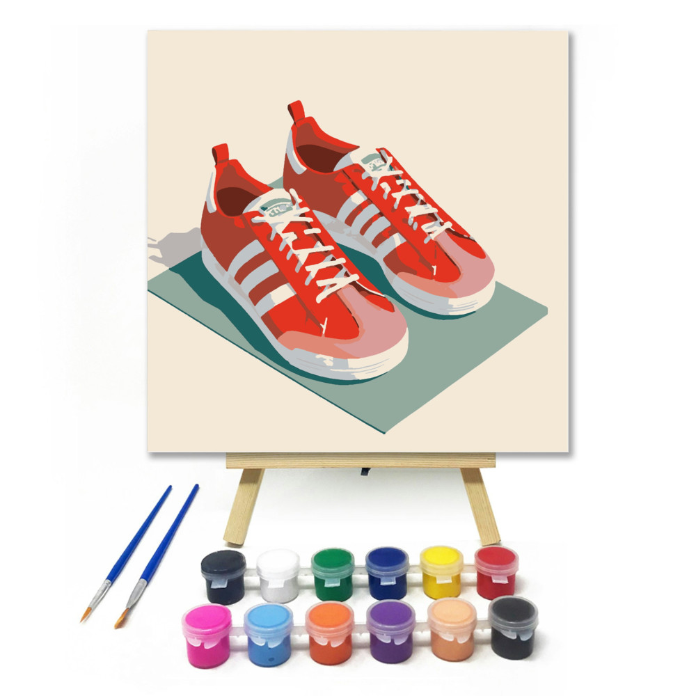 Piros futócipő - gyerek számfestő készlet – 20×20 cm (Keretre feszítve)