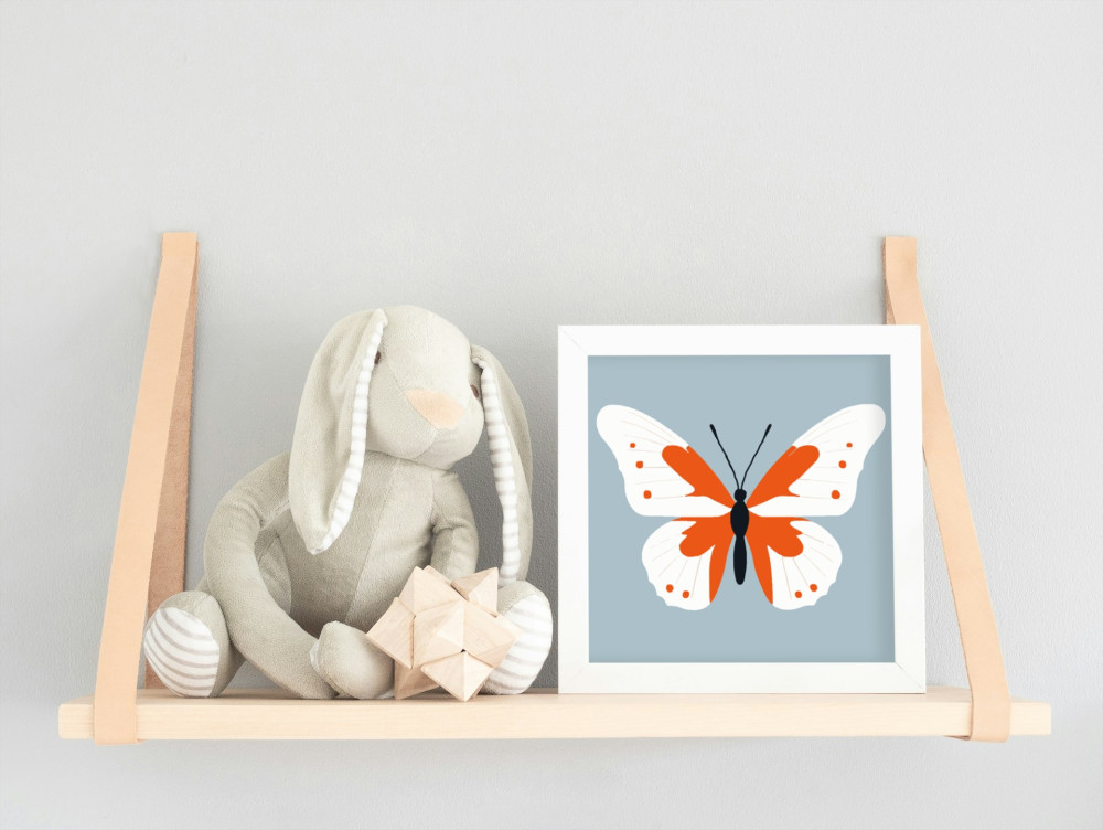 Ez a kép egy vidám pöttyös lepkét mutat, amely szárnyait büszkén tárja szét a kék ég alatt. A lepke élénk narancs és fehér színei játékosan ragyognak, mintha csak táncra kelnének a napsütésben. Tökéletes választás a gyerekek színes kalandjaihoz!