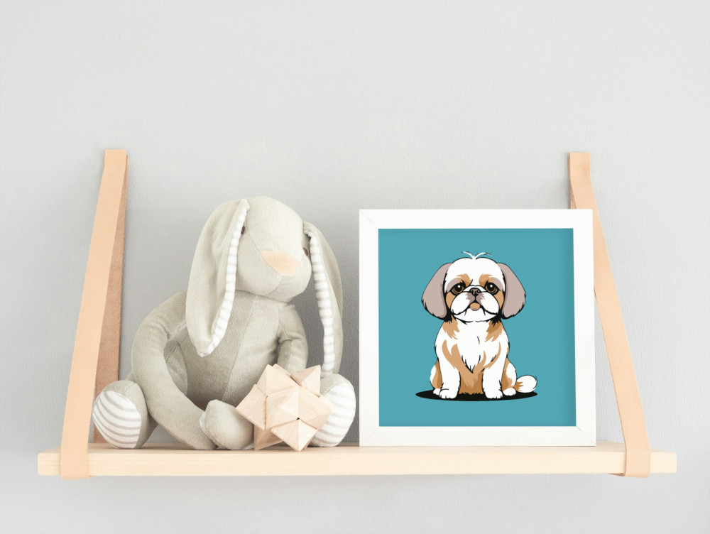 Ez a kép egy bájos, pufi kiskutyát ábrázol, aki kíváncsian figyel a világra. A barátságos kék háttér és a vidám színek igazán megmozgatják a fantáziát. Tökéletes választás a gyerekek első kreatív kalandjához!
