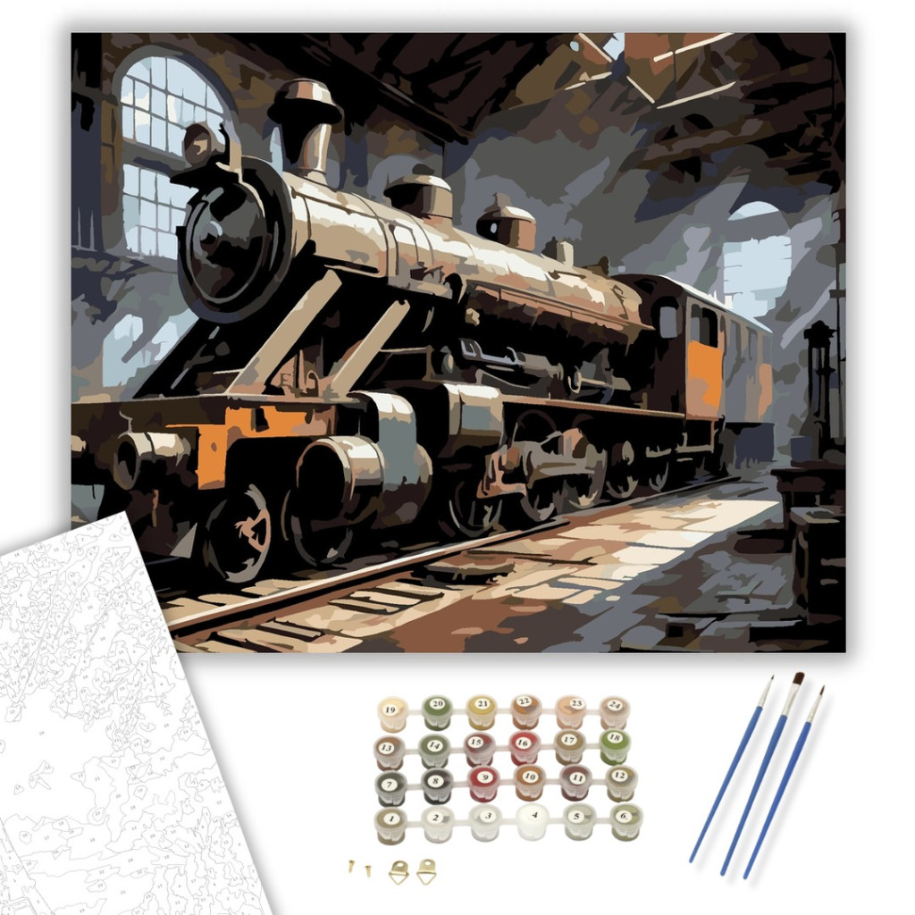 Régi Mozdony Műhelyben - számfestő készlet - Számfestő.hu - 60×70cm - keretre feszítve