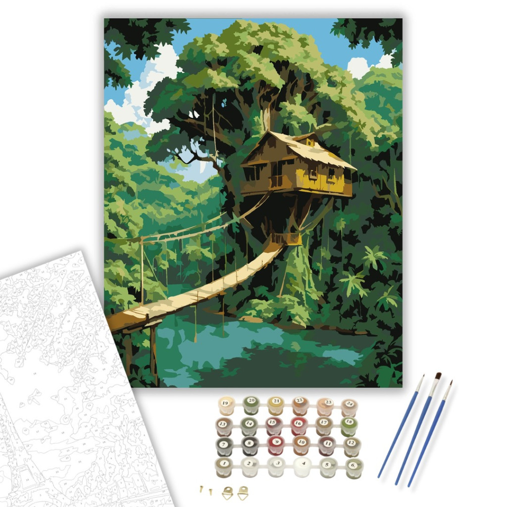 Rejtett Lombház a Dzsungelben - számfestő készlet – 50×60 cm (Keretre feszítve)