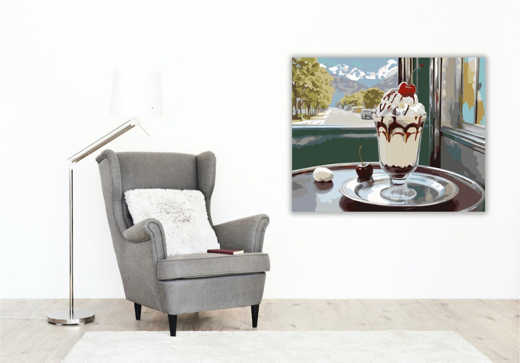 Retro Fagylaltkehely Cseresznyével - számfestő készlet – 40×50 cm (Keret nélkül)