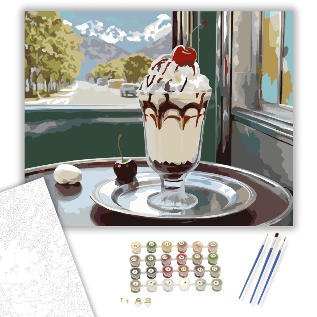 Retro Fagylaltkehely Cseresznyével - számfestő készlet – 50×60 cm (Keret nélkül)