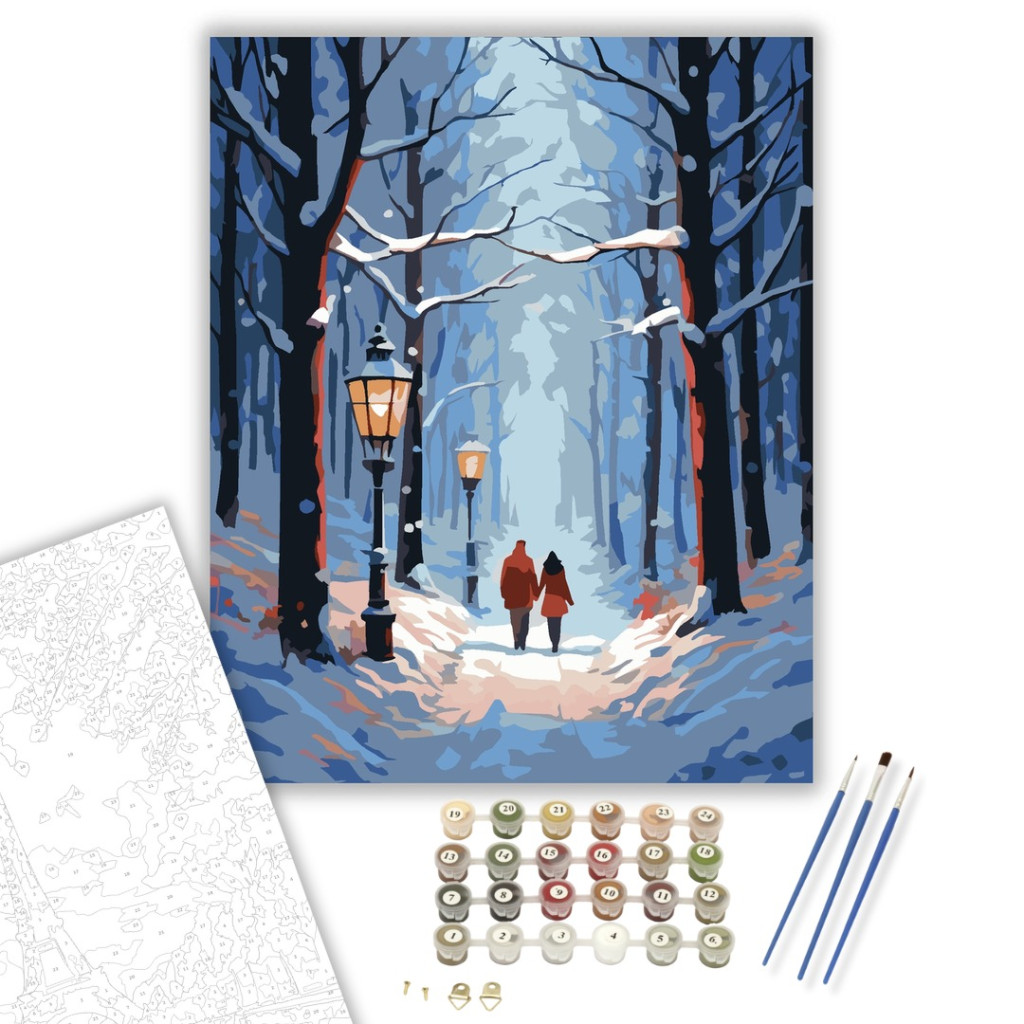 Számfestő készlet – Romantikus Téli Séta a Havas Erdőben – 40×50 cm (Keret nélkül)