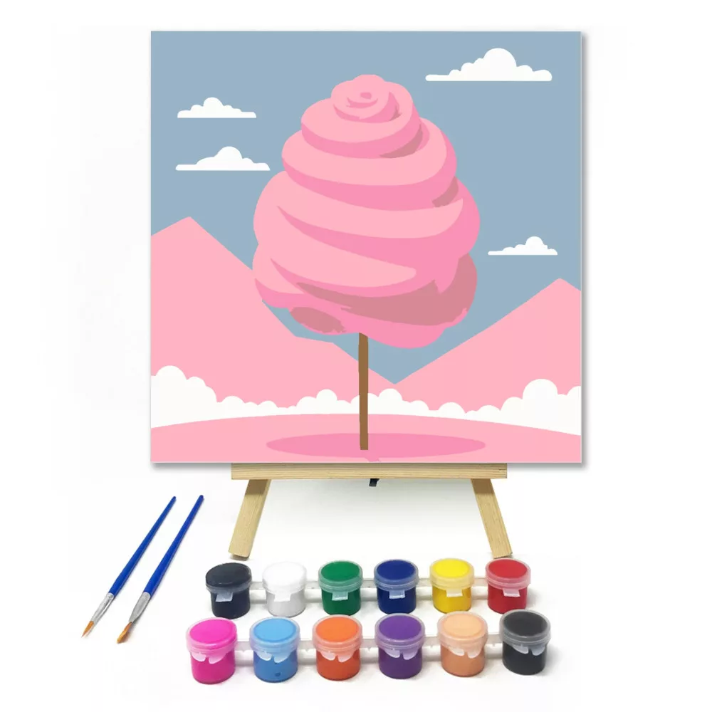 Rózsaszín vattacukor - gyerek számfestő készlet – 20×20 cm (Keret nélkül)