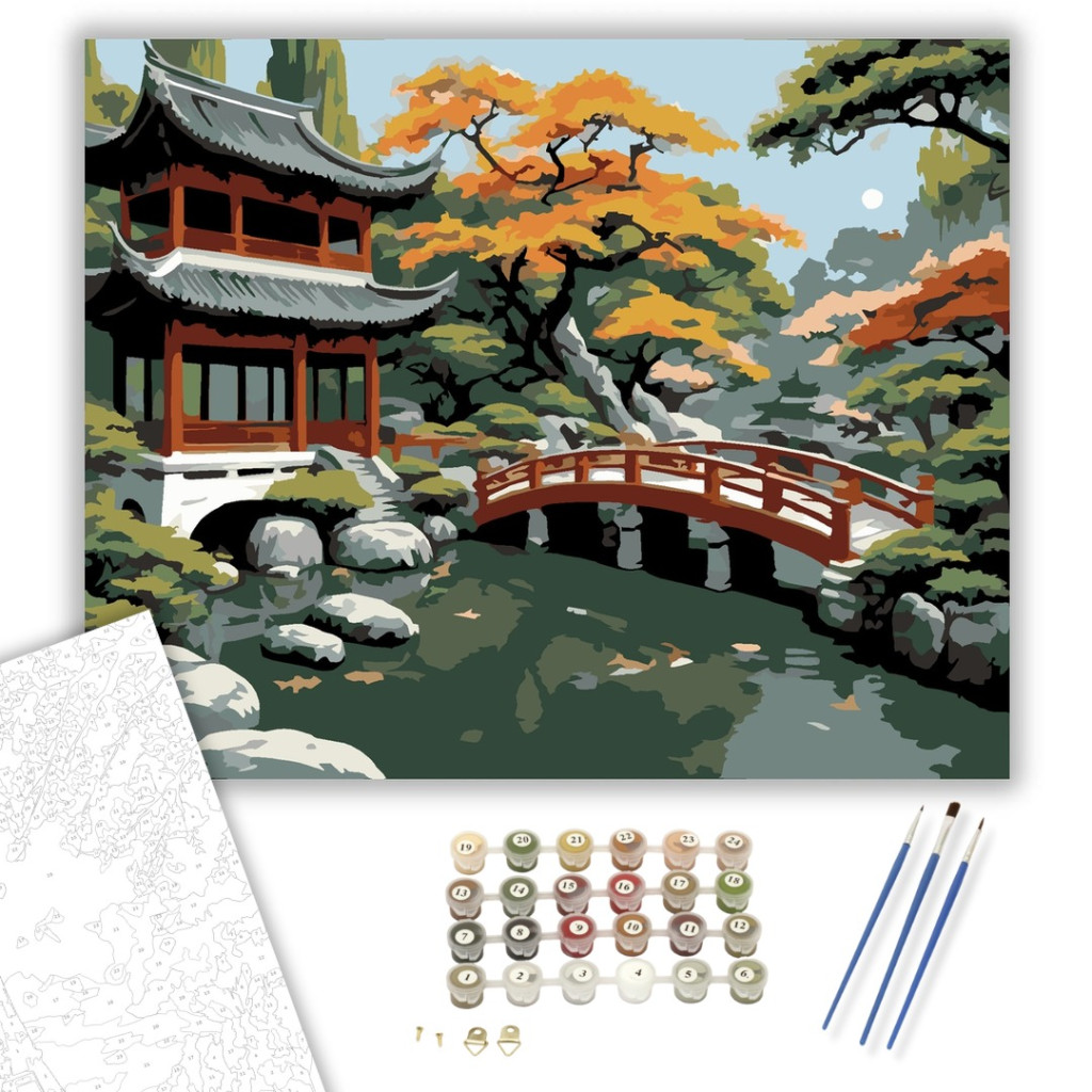 A festmény a shanghai Yu Garden nyugalmas szépségét ábrázolja, ahol íves hidak, koi tavak és tradicionális pavilonok bújnak meg a gondosan formált fák és sziklák között. Az élénk narancs és zöld színek harmonikus egyensúlya, valamint a részletgazdag ecsetkezelés kiemeli a kínai kertművészet finomságát. Ez a kompozíció tökéletesen visszaadja Kína misztikus és történelmi atmoszféráját, inspirálva a nézőt a felfedezésre. Legyen a lakásod dísze vagy egy kedves meglepetés valaki számára – ez a számfestő készlet tökéletes választás mindkettőre. A készletben mindent megtalálsz, amivel lépésről lépésre megalkotható ez a gyönyörű festmény.