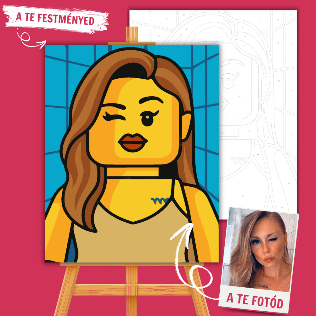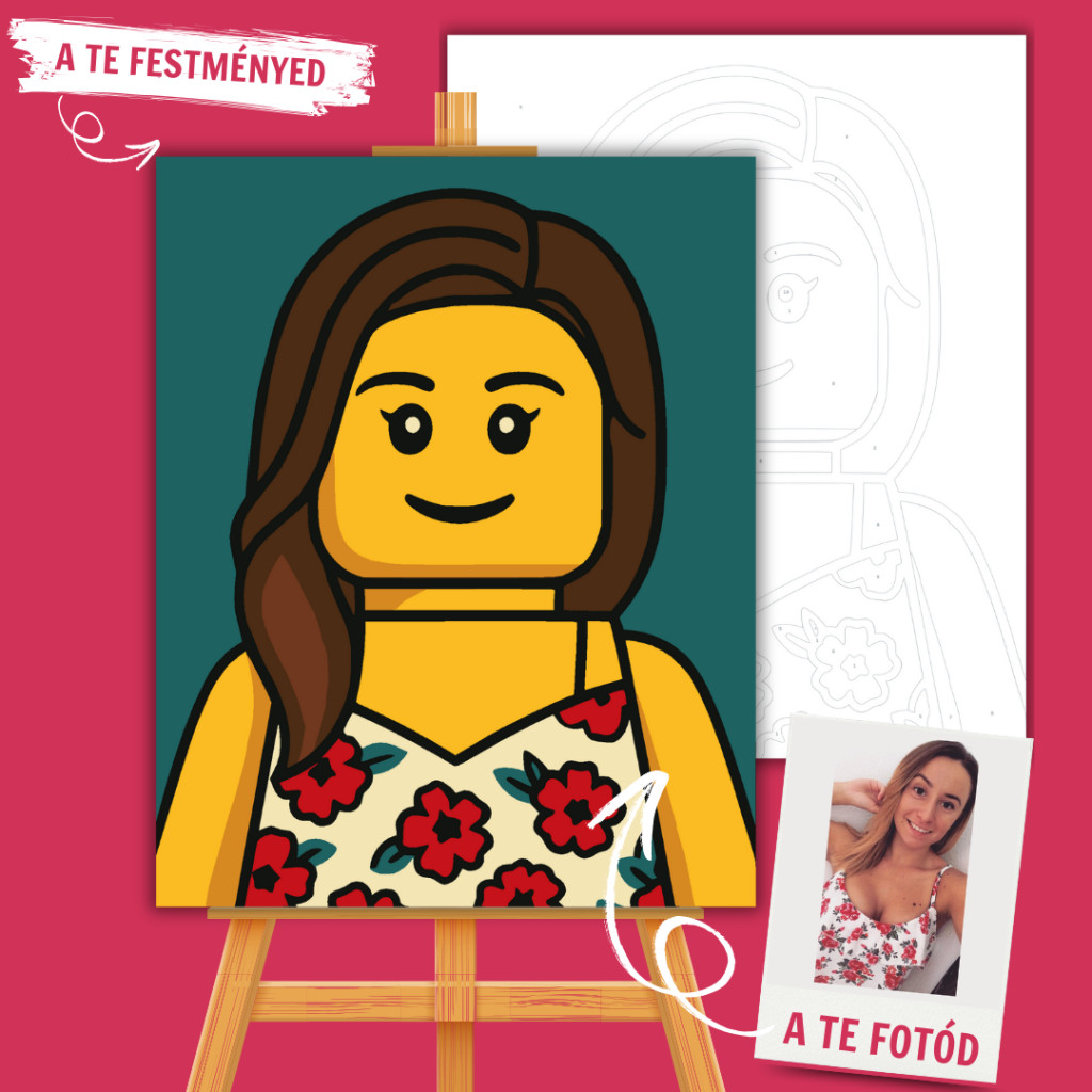 Most valóban egyedi számfestő portréd lehet: a saját arcod játékfigura ihlette stílusban születik újjá! A Minifigura Stílus egyszerűsített, karakteres formáival jeleníti meg a valódi arcvonásokat, vidám és ikonikus megjelenést kölcsönözve. Jól kivehető vonások, letisztult színek és kedves karakter – mókás, mégis könnyen festhető stílus.