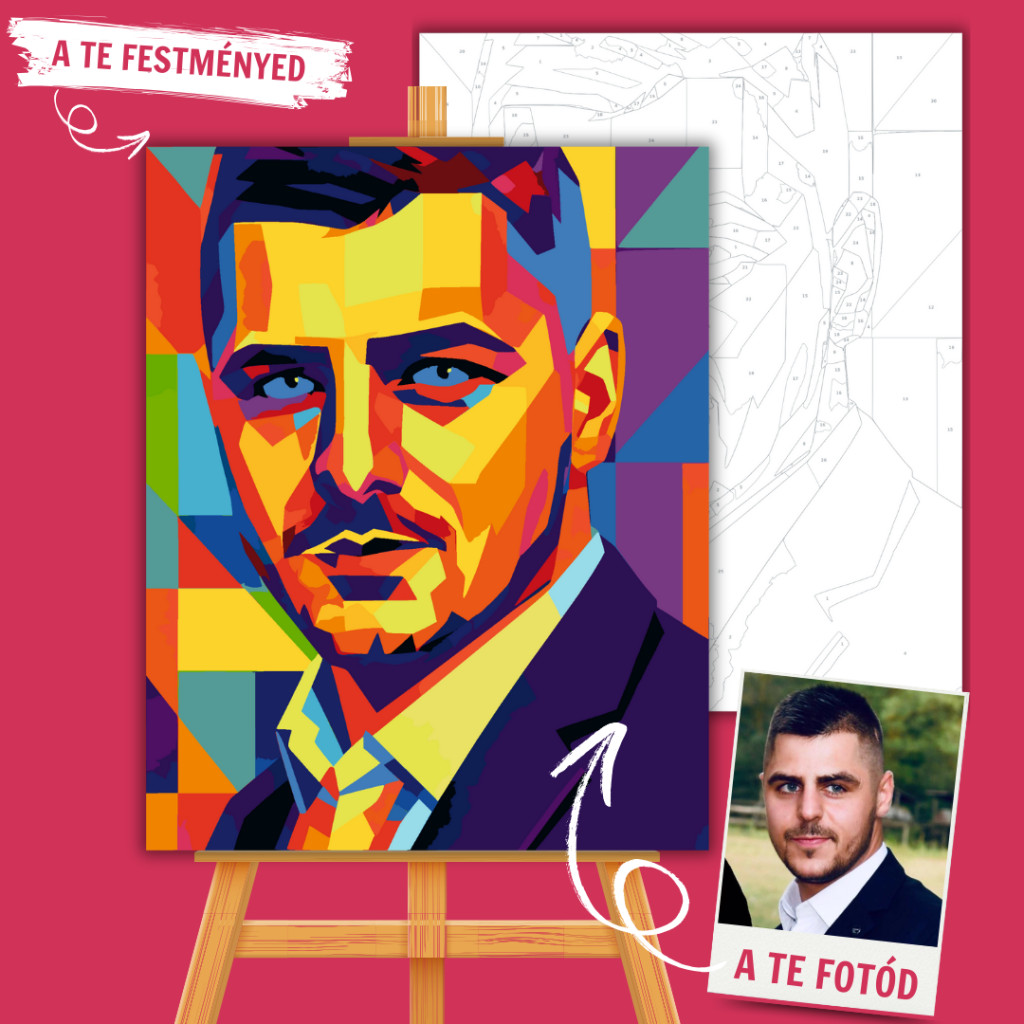 Küldd be a fotódat, és mi azt egyedi WPAP stílusban alakítjuk át — egy színes, modern portrévá, amit te magad festhetsz meg! A WPAP (Wedha’s Pop Art Portrait) stílus geometrikus, színblokkokból álló vizuális látványvilágot teremt, ami rendkívül festőbarát. Ha valami igazán modern, dinamikus és különleges festményt szeretnél, ez a Te stílusod!