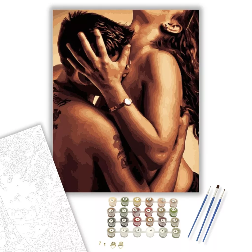 A kép meleg tónusai és szenvedélyes jelenete az intimitás mély érzését kelti a nézőben. Egy elragadó pillanat bontakozik ki, ahol a szerelem és a vágy találkozik. Az árnyalatok gazdag kontrasztja életre kelti a kompozíciót, miközben a háttér lágyan támogatja az érzelmi kifejezést. Tökéletes választás hálószobába vagy egy romantikus sarokba, ahol meghittséget sugároz. A csomag tartalmazza az összes szükséges eszközt, hogy ezt az érzelmes művet otthonod részévé tehesd.