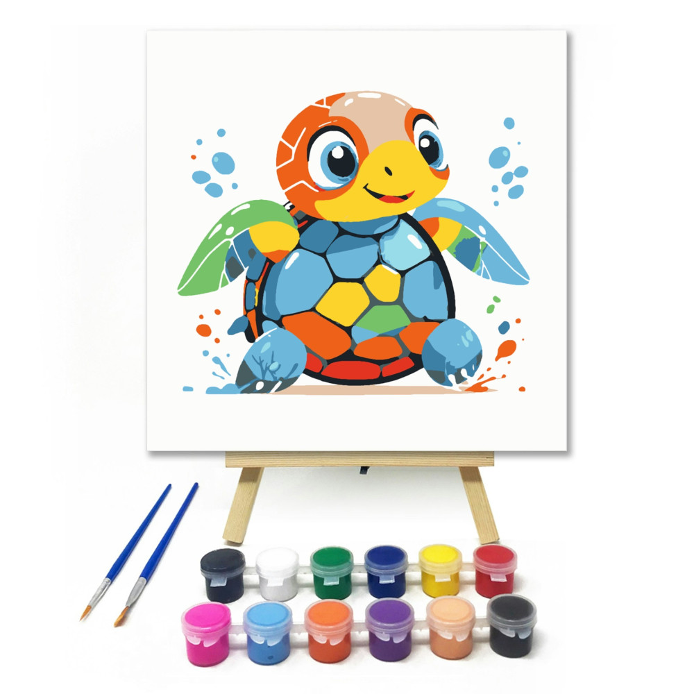 Színes teknősbéka - gyerek számfestő készlet – 20×20 cm (Keretre feszítve)