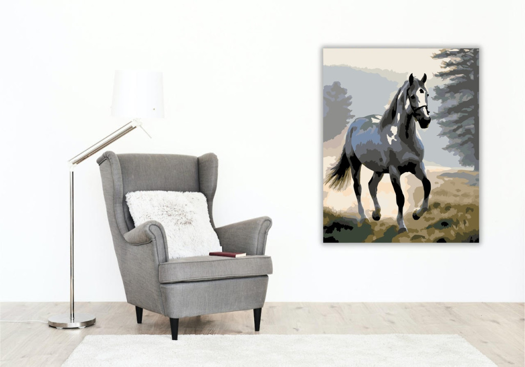 Számfestő készlet – Szürke Ló a Ködös Völgyben – 50×60 cm (Keret nélkül)