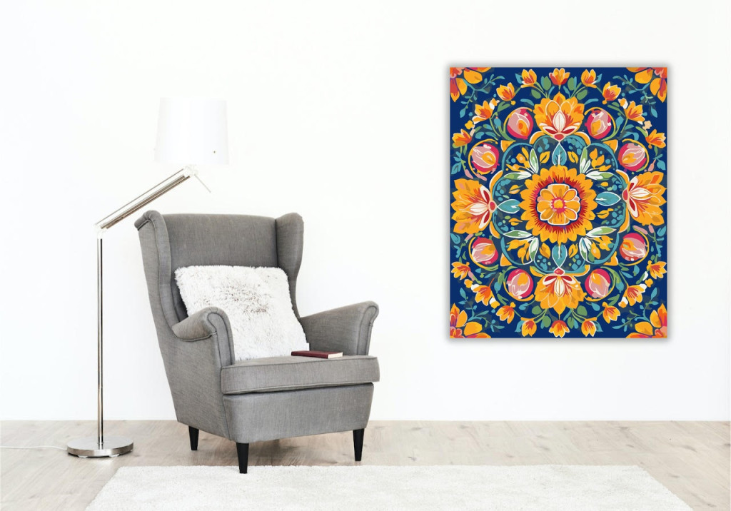 Tavaszi Virág Mandala Élénk Színekkel - számfestő készlet – 60×70 cm (Keretre feszítve)