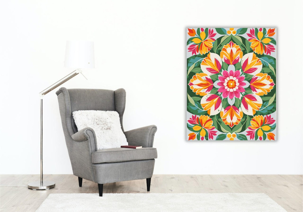 Számfestő készlet – Tavaszi Virág Mandala – 40×50 cm (Keret nélkül)