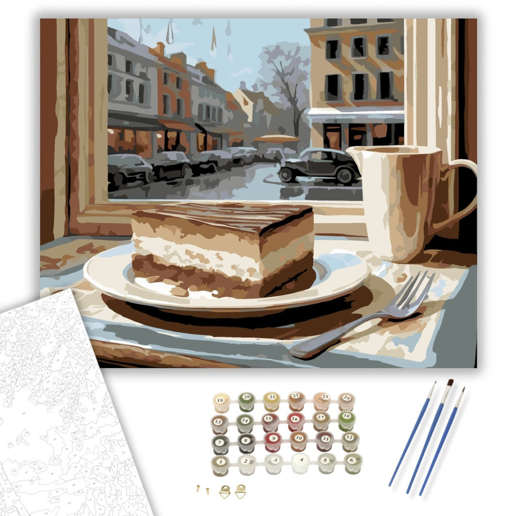 Számfestő készlet – Tiramisu Kávéházi Ablaknál – 40×50 cm (Keretre feszítve)