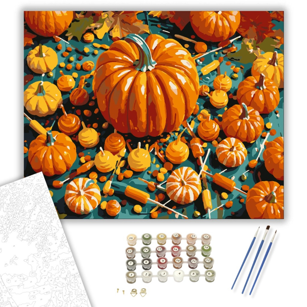 Számfestő készlet – Tökök és édességek kavalkádja – 40×50 cm (Keretre feszítve)