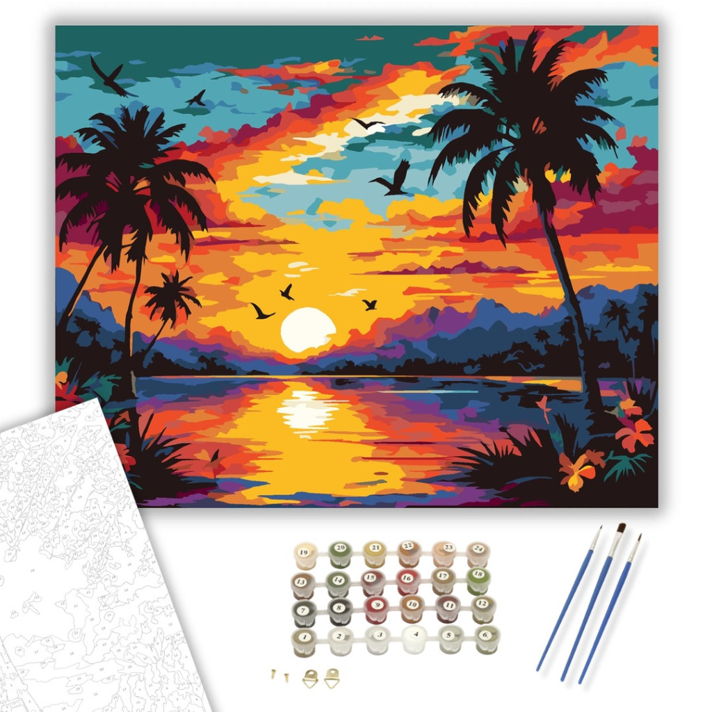 Számfestő készlet – Trópusi Naplemente Pálmafákkal – 40×50 cm (Keret nélkül)