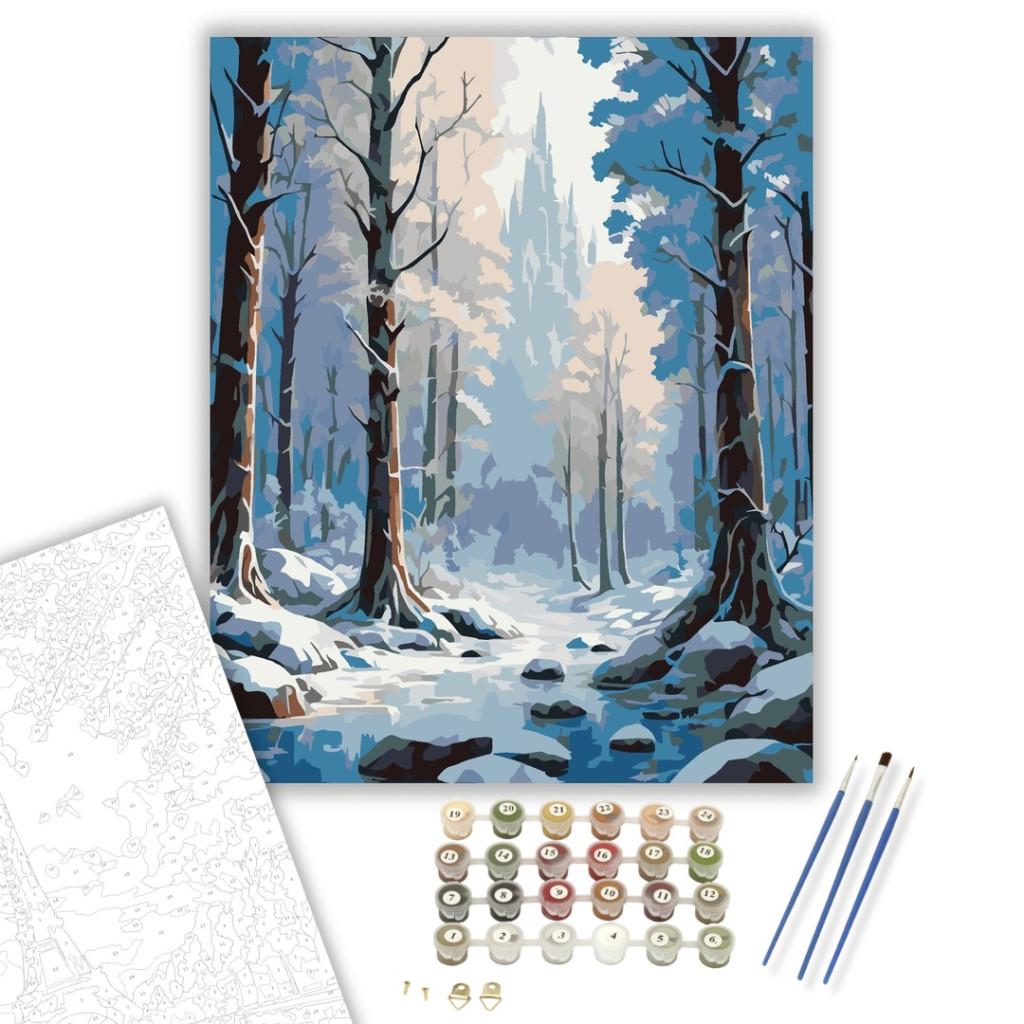 Varázslatos Téli Kastély az Erdő Mélyén - számfestő készlet – 60×70 cm (Keret nélkül)