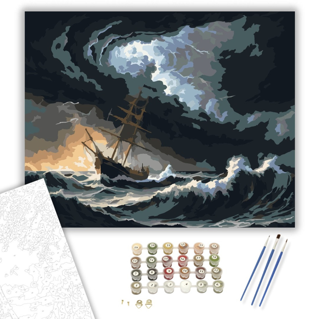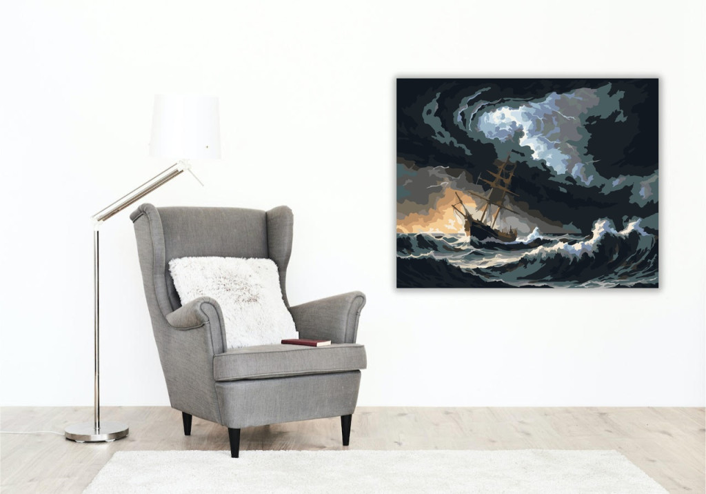 Számfestő készlet – Viharos Tenger és Halászhajó – 80×100 cm (Keret nélkül)