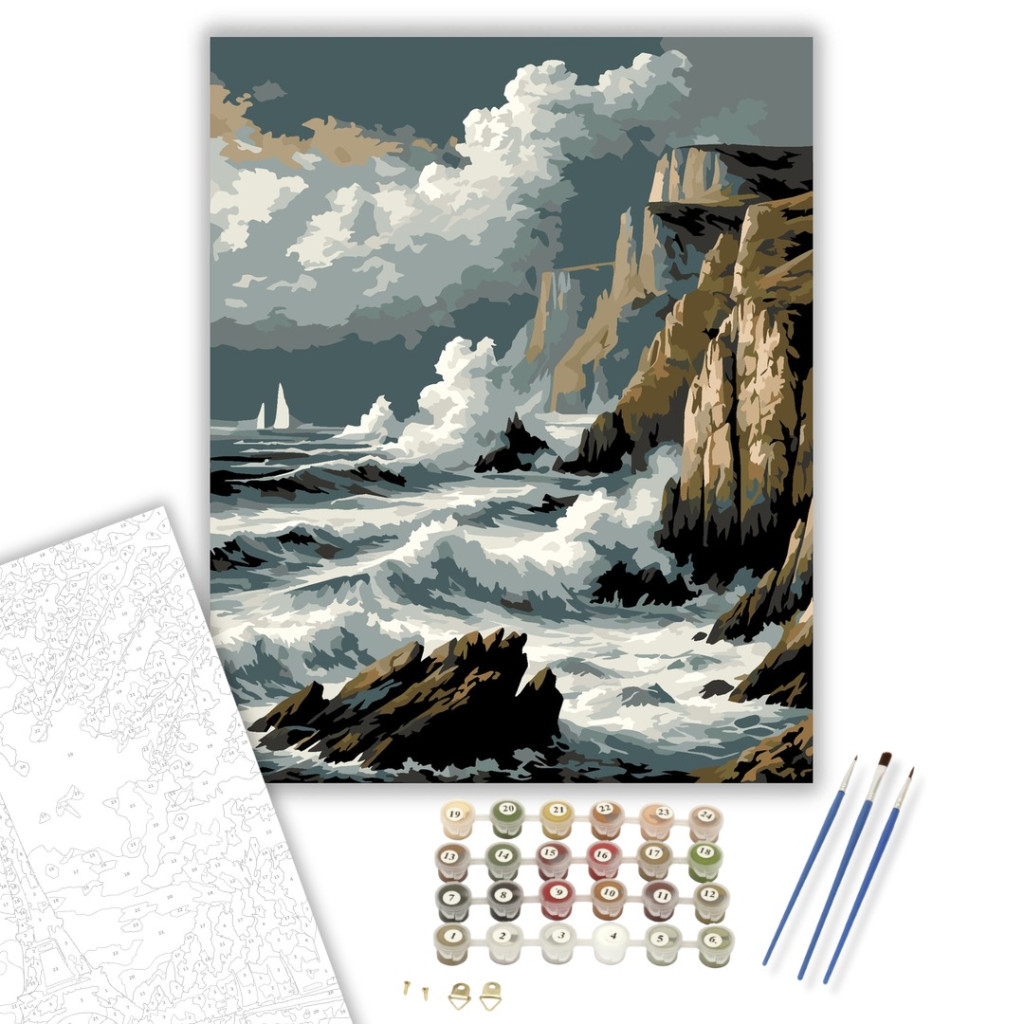 Számfestő készlet – Viharos Tenger és Sziklás Part – 40×50 cm (Keret nélkül)